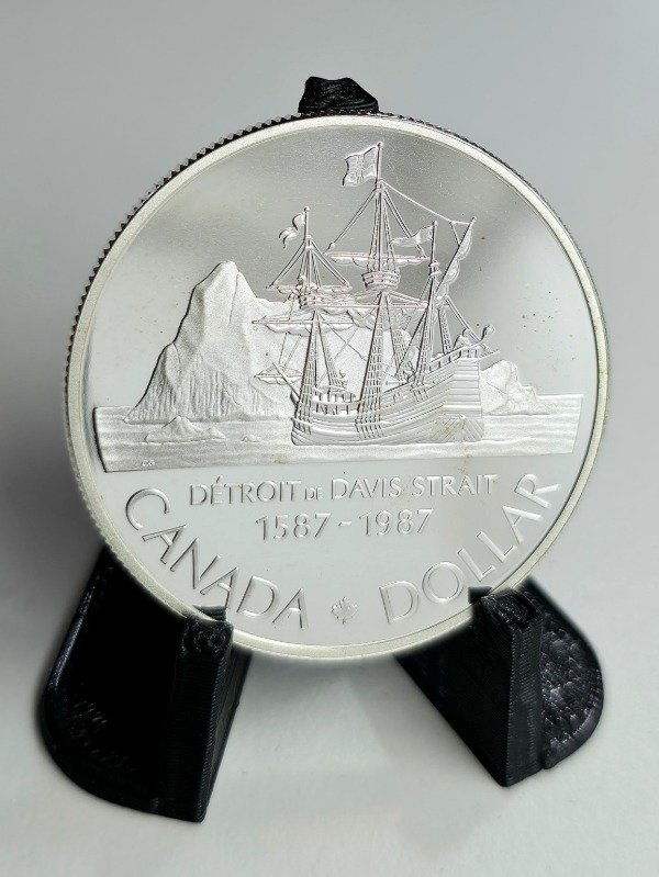 La moneda es un homenaje a la perseverancia y el coraje de los primeros exploradores marítimos en las duras aguas del Ártico canadiense, simbolizados por el navegante John Davis y su descubrimiento clave en la búsqueda de una ruta transoceánica.