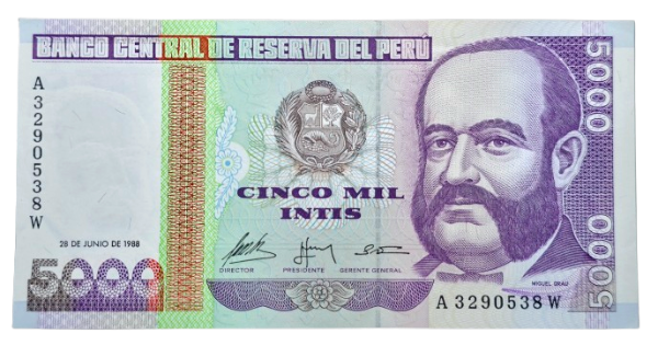 Almirante Miguel Grau a la derecha, escudo de armas del Perú en el centro.