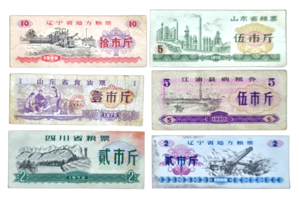 Estos cupones de racionamiento se intercambiaban por alimento (arroz, granos, aceite etc.) permitían al comprador comprar una cierta cantidad de peso racionado. Se los llamaban LIANGPIAO (productos de racionamiento de granos y productos básicos).
