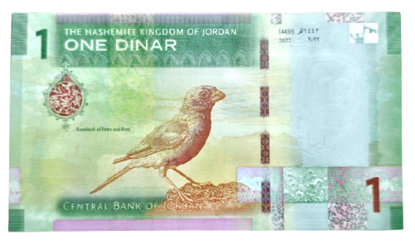 El gorrión rosa de Petra y Wadi Rum (ave nacional del Reino Hachemí de Jordania) en el centro.