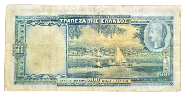 Del otro lado, la isla de Poros vista desde la ciudad de Galatas y barcos de vela en el centro, camafeo que representa a Deméter.