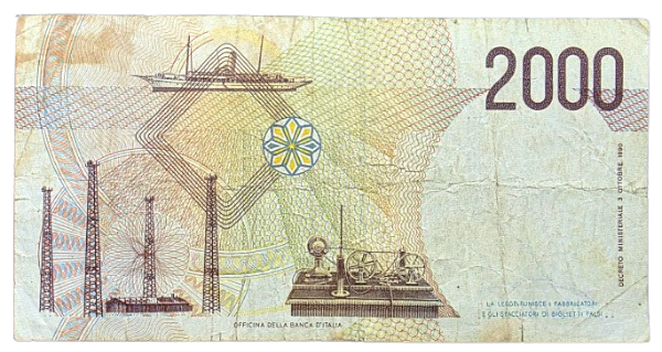 Del otro lado, el primer aparato radio de Marconi, torres de radio frecuencia y barco.