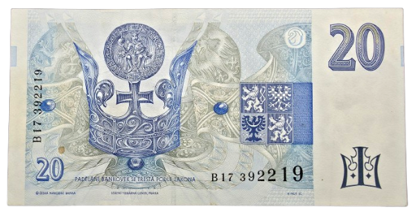Del otro lado, corona con sello y cruz arriba en el centro, y a la derecha, el escudo checo.