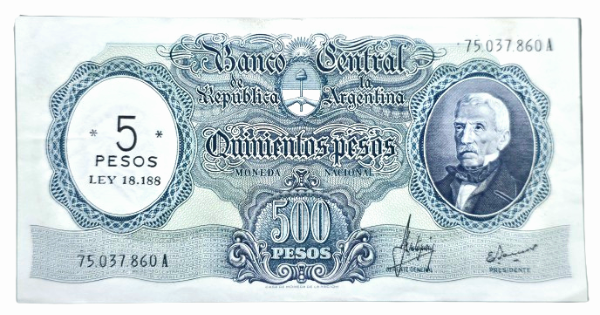 5 Pesos Resellado sobre 500 Pesos