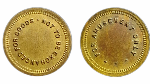Estas fichas no eran monedas oficiales, sino tokens de arcade o máquinas recreativas.