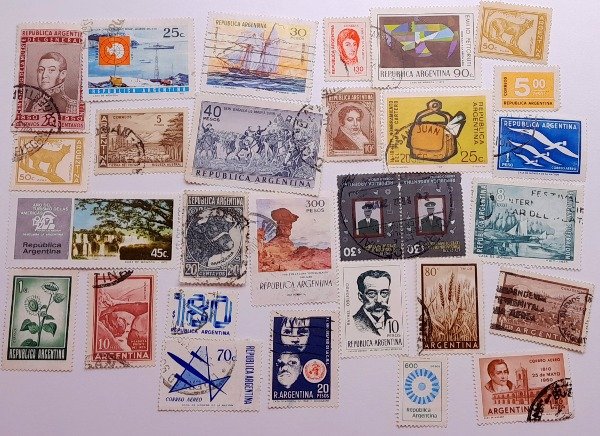 • 27 sellos argentinos a clasificar + 1 bloque. Algunos de buen tamaño.