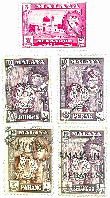 Estampillas década 50'/60' antes de la formación de Malaya en 1963.