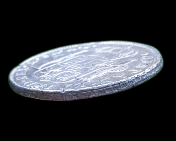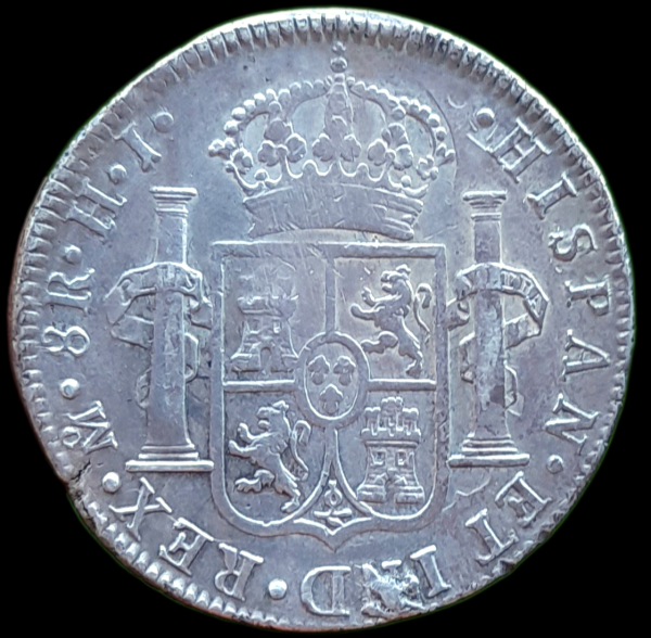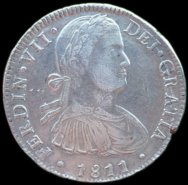Esta pieza fue acuñada durante la Guerra de Independencia de México. A pesar del conflicto, la Casa de Moneda de México siguió produciendo moneda realista (leal al rey Fernando VII), lo cual se refleja en esta pieza.