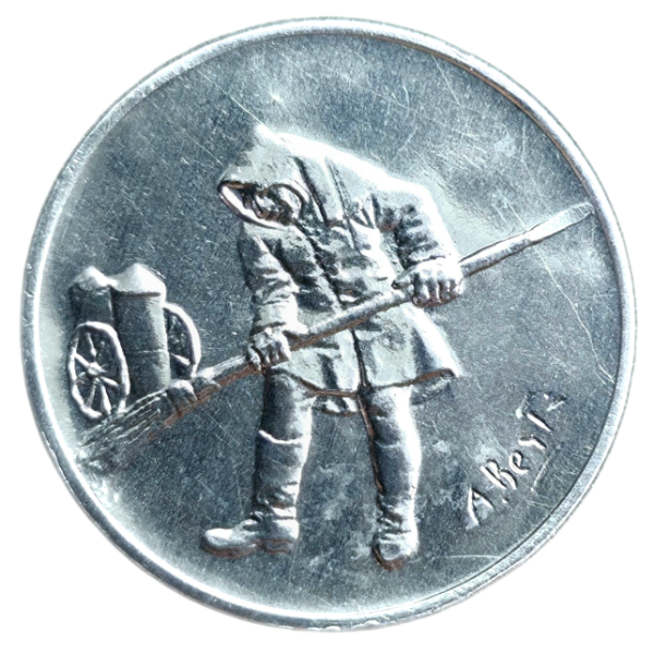 Por primera vez en su historia, el barrendero, que sale con su escoba antes del brumoso amanecer, ha llegado en una moneda. Esta pieza pone en valor su labor e importancia en el mantenimiento de la limpieza y prevención de enfermedades de la ciudad.